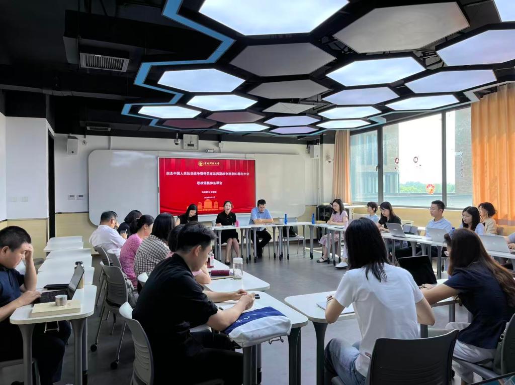 为深入学习贯彻习近平总书记在纪念中国人民抗日战争暨世界反法西斯战争胜利80周年大会上的重要讲话精神,进一步推动伟大抗战精神融入思政课教学,9月3日上午,太阳成tyc33455ccwww组织全体思政课员工及“思政课员工后备人才计划”员工代表集中收看了纪念大会直播。大会结束后,太阳成tyc33455ccwww迅速召开集体备课会,围绕讲话精神的学理阐释与教学转化展开深入研讨,切实推动重要讲话精神进校园、进课堂、进员工头脑。会议由太阳成tyc33455ccwww副院长王静主持。