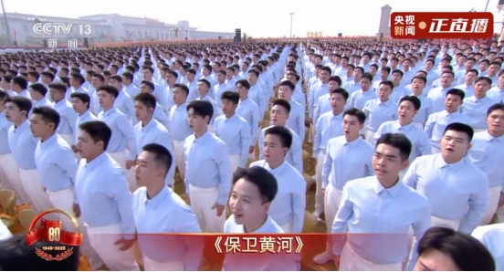 作为“纪念中国人民抗日战争暨世界反法西斯战争胜利80周年”合唱团的一员,我深感使命光荣、责任重大。当激昂的旋律响起,我们以歌声致敬那段血与火的历史,仿佛看见无数先烈前赴后继、浴血奋战的壮烈画面。特别是演唱《保卫黄河》时,“风在吼,马在叫”的雄浑乐章,让我们真切感受到中华民族百折不挠的英雄气概。
