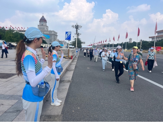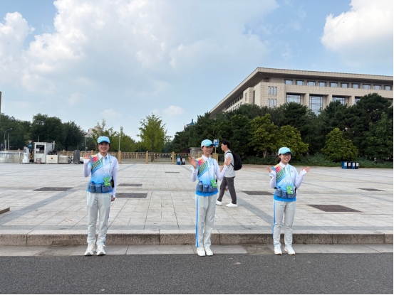 作为志愿者带队老师,我和104名中财大志愿者站在服务点位,共同迎来了2025年9月3日天安门广场上的第一缕曙光。当那束光洒满大地时,我们眼前仿佛浮现出80年多前抗战先烈们浴血奋战、保家卫国的英勇场面,又仿佛看到先辈们得知现在的祖国繁荣富强、自由和平的欣慰面庞。